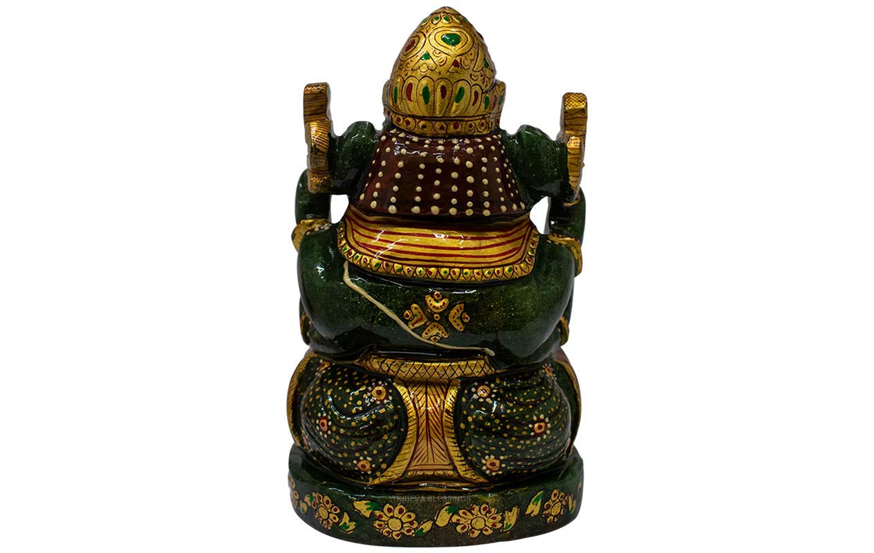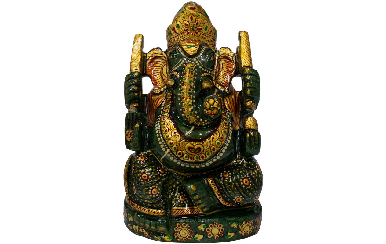 The Hindu deity in a human form but with the head of an elephant – represents the power of the Supreme being that removes obstacles and ensures success in life. For this reason, Hindus worship Ganesha first before beginning any religious, spiritual or worldly activity. Lord Ganesha is the first son of Lord Shiva and the Divine Mother Parvati. By worshipping Jade Ganesha you may become more patient and knowledgeable as he is the god of intellect and happiness. The meaning of Jade stone is purity or purification, harmony and balance because jade is regarded as a stone that protects and supports loving heart energy, jade also symbolizes gentleness and nourishment.