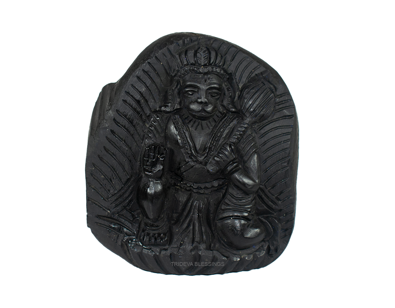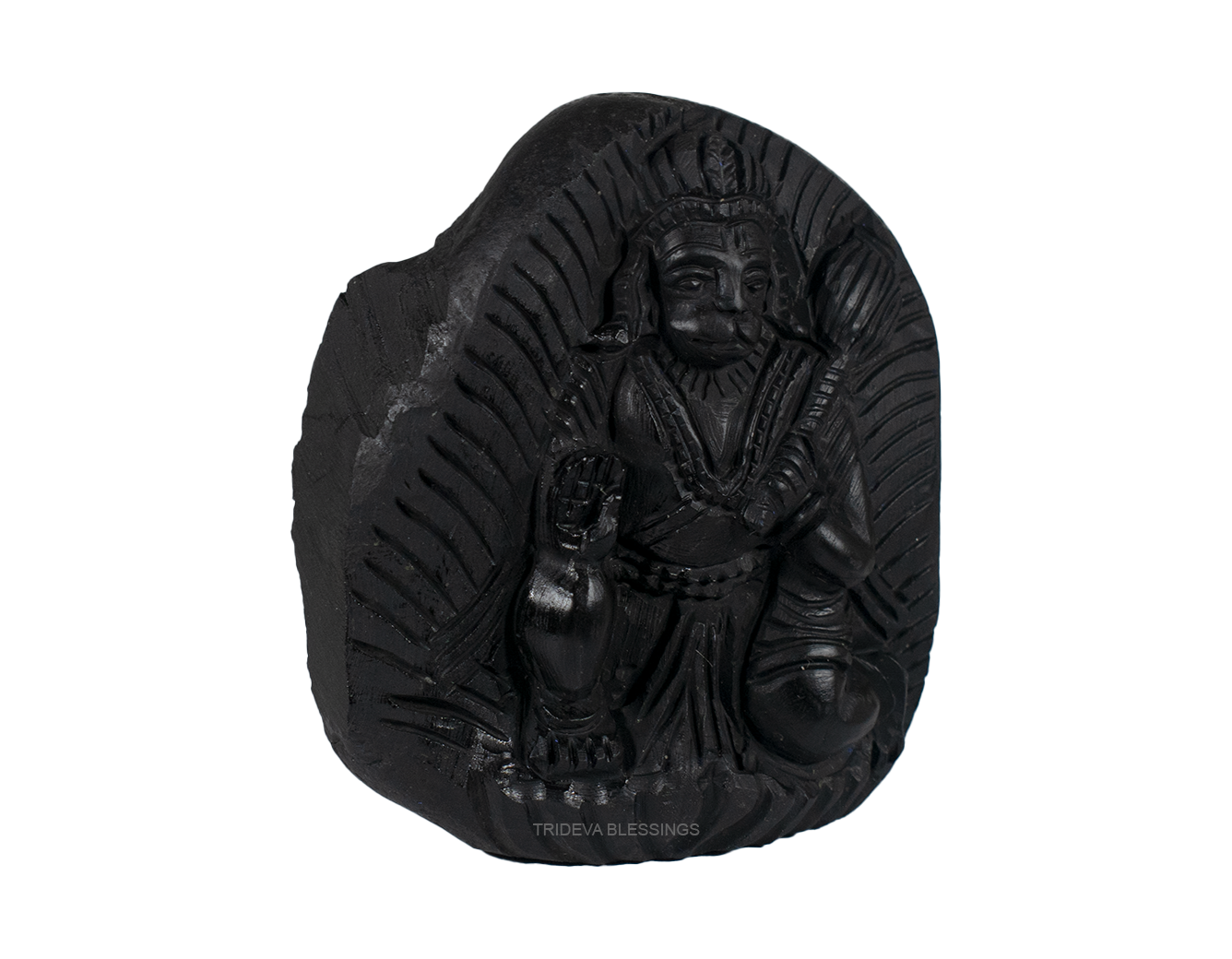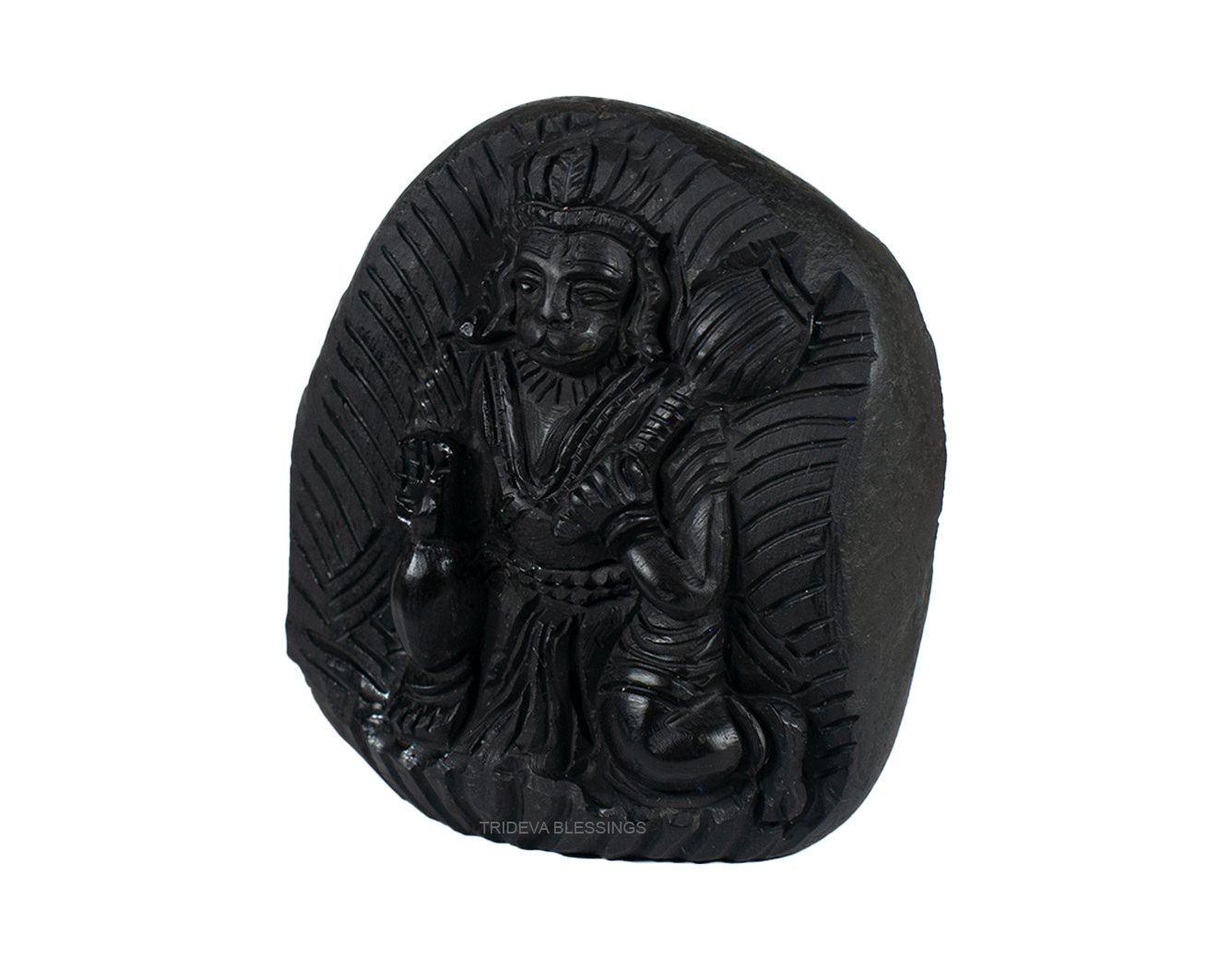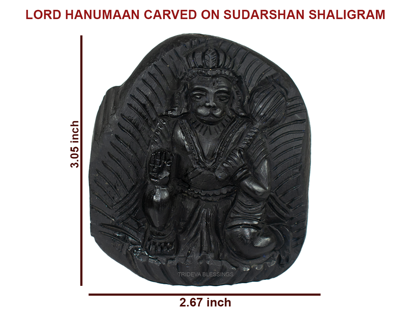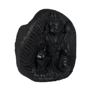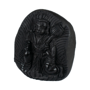 Lord Hanuman carrying the mountain containing Sanjeevni herb is meticulously carved on the sacred Shaligram stone. The true charm of the idol lies in the meticulous fine carving illustrating the jewels and clothing and the black colour of idol on Sudarshan Shaligram which gives the idols very antique. The divine idol can be placed in your puja altar for collective blessings of the Lord Hanuman. The idol helps remove vastu defects, provides protection from negative energies and bestows success, courage, confidence and strength. Lord Hanuman is worshipped for power and protection, Lord Hanuman idol helps one become more confident and attain success in life. Buying this Idol will shower success, strength, courage, intelligence, power, and creativity on the worshiper. Worshiping Hanuman idols keeps you under the positive shadow of Lord Hanuman and protects you from all types of danger by strengthening with courage and knowledge. His undying source of energy will charge up your life and stimulate your inner self to do better in life.